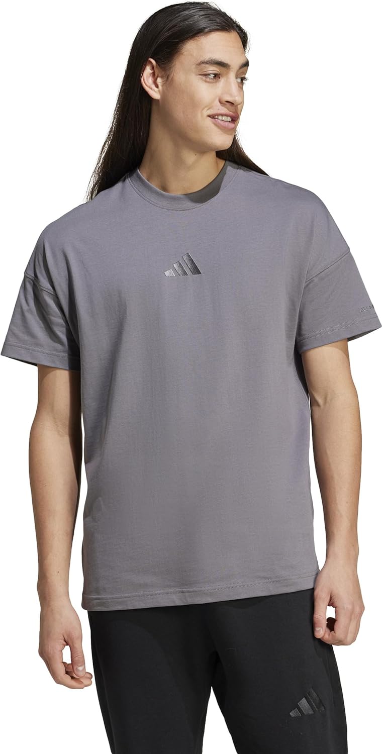 Sometimes the clean and simple look is the best. This men's adidas t-shirt is cut a bit loose for easy movement, while a crewneck keeps the fit snug. The cotton single jersey build is soft to the touch.