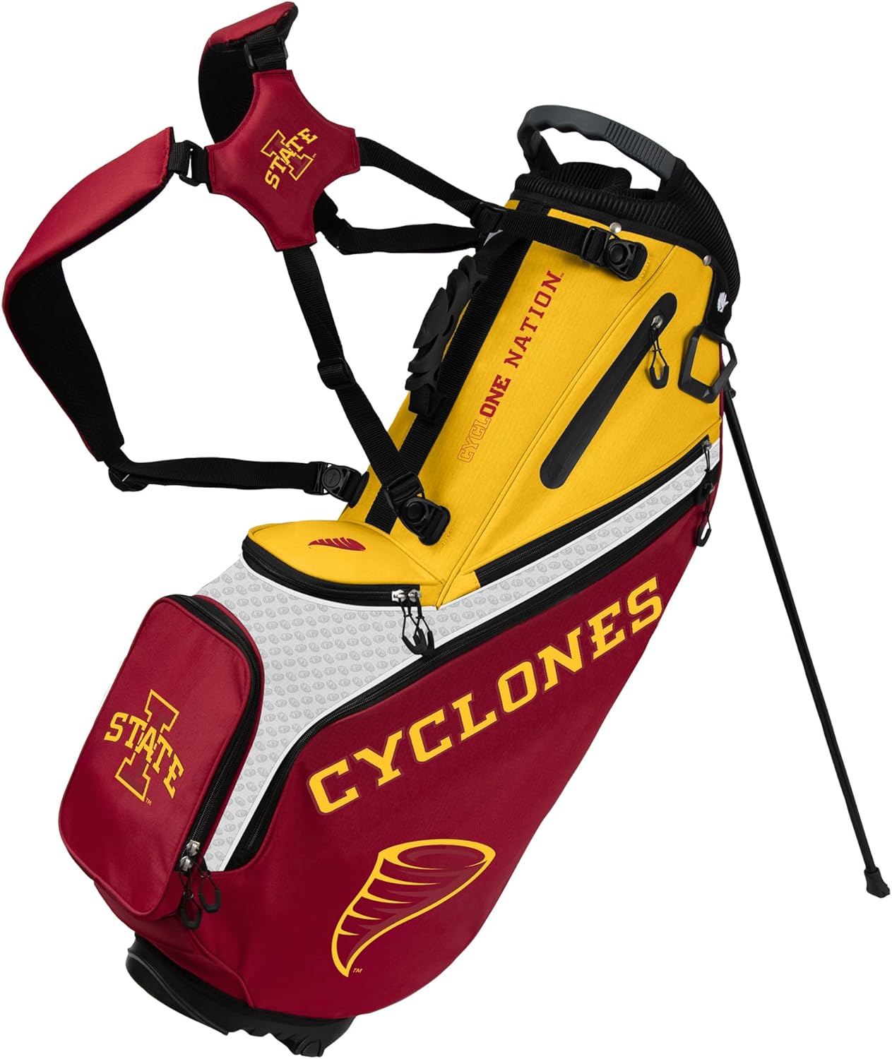 The Back Nine Stand Bag from WinCraft elevates the experience of lightweight carry bags for golfers and team fans. This next generation of golf bags from WinCraft was developed in collaboration with leading golf experts and representatives from professional and collegiate sports teams. This officially licensed bag showcases prominent logos and practical design elements. Weighing 5.25 lbs, it features an 8-way top with full-length dividers for efficient club organization, as well as removable padded shoulder straps for ease of transportation in a cart. The Back Nine Stand Bag combines comfort, functionality, and style, making it a reliable choice for golfers eager to display their team pride on the course for years to come.